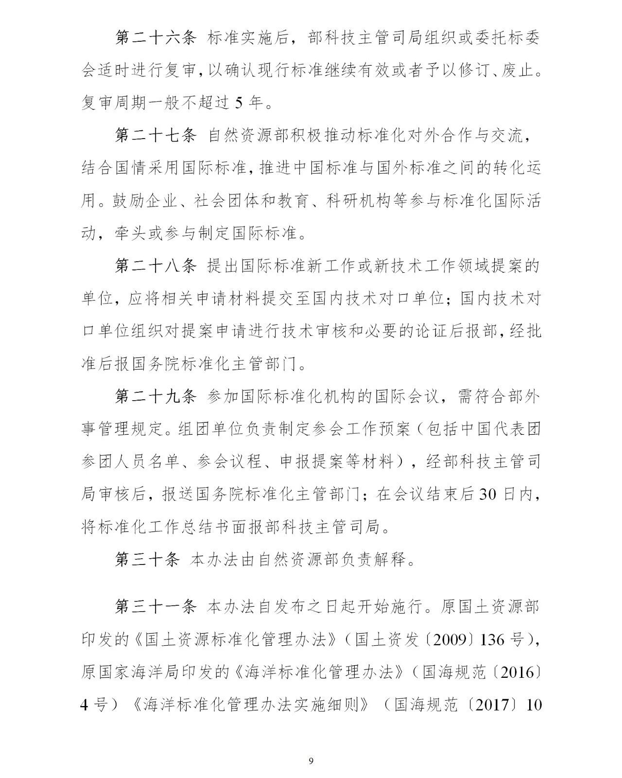 自然资源部关于印发《自然资源标准化管理办法》的通知