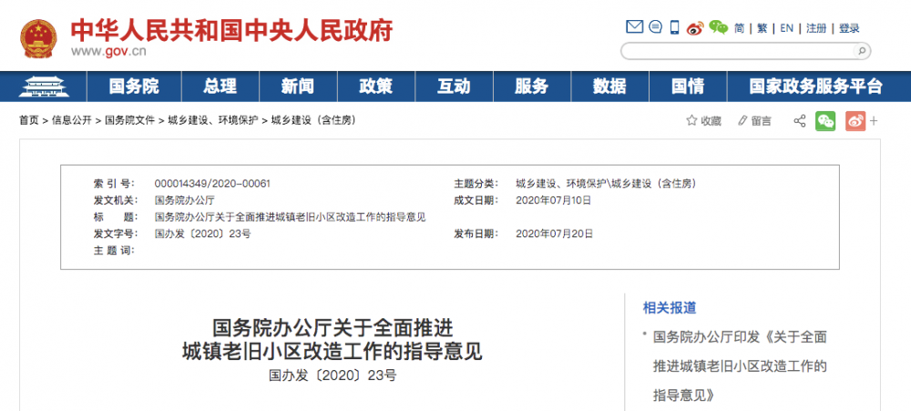 国务院: 全面推进三大类城镇老旧小区改造工作,支持PPP模式参与改造