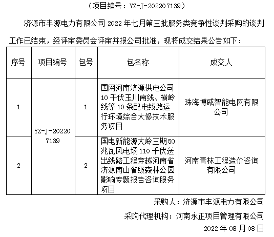 米兰MiLan(中国)市丰源电力有限公司2022年七月第三批服务类竞争性谈判采购成交结果公告