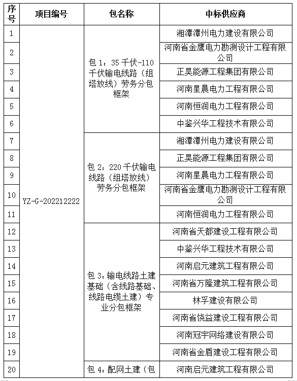 米兰MiLan(中国)市丰源电力有限公司2023年施工供应商框架入围项目的评标工作已结束,经评标委员会评审并报公司批准,现将中标结果公告如下: