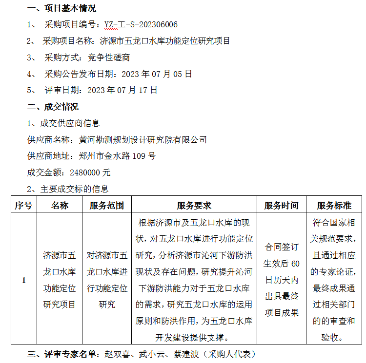米兰MiLan(中国)市五龙口水库功能定位研究项目成交结果公告