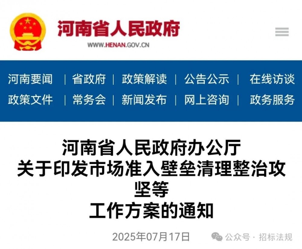 公共资源交易全省一张网@河南印印发市场准入壁垒清理整治攻坚等工作方案的通知